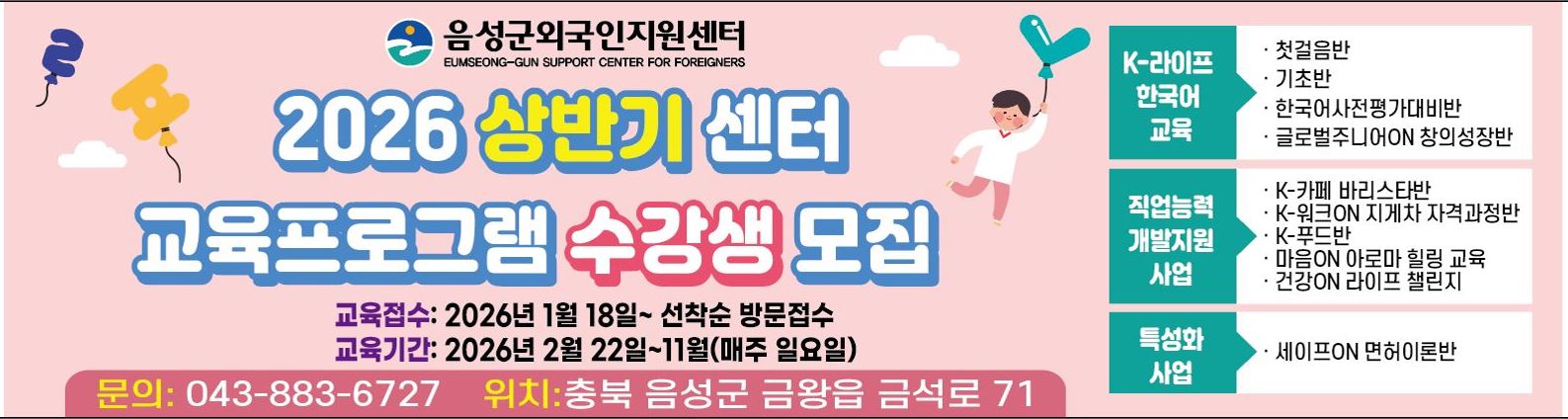 음성군외국인지원센터의 다양한 교육프로그램을 소개합니다.