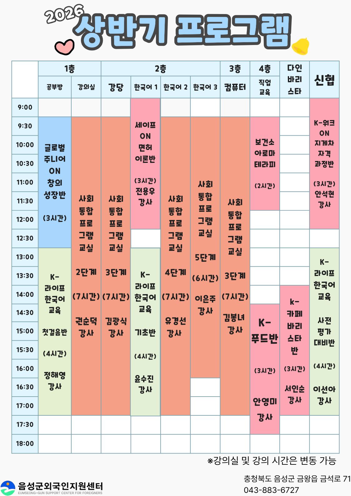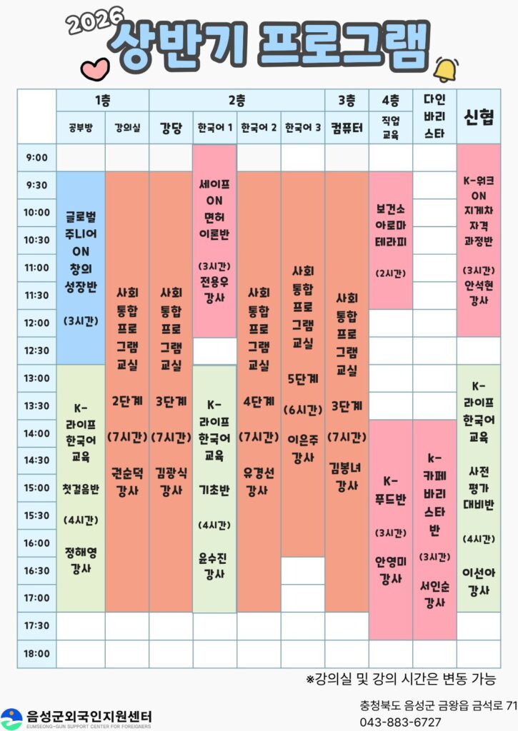 2026 프로그램 시간표 안내